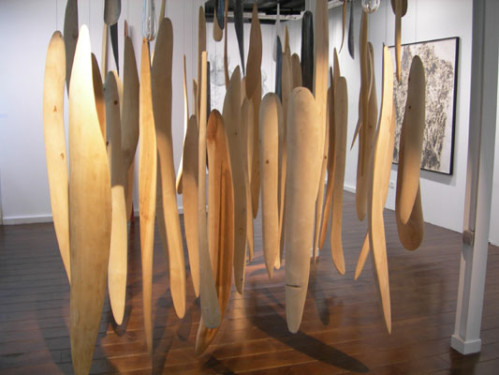 Les unes sont simplement posées au sol, isolées ou inscrites dans des jeux précis d'alignement; les autres suspendues sont dispersées suivant le lieu où elle les expose. L'artiste dispose ses pièces de façon à suggérer un parcours tout en laissant au regardeur toute latitude de circuler à sa guise.